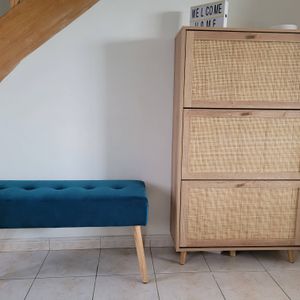 Banc scandinave capitonné en tissu effet velours texturé terracotta et bois clair L96 cm GUESTA