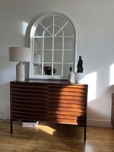 Dans un salon, ce buffet 2 portes formera un joli duo avec un tapis tufté aux tons clairs. Ambiance douce et chaleureuse au programme...