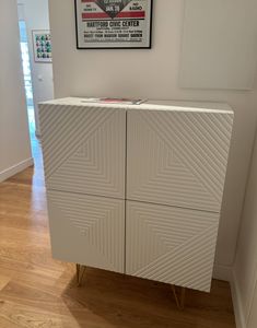 Buffet haut design gravé blanc mat et métal doré 4 portes L86 cm OZEN