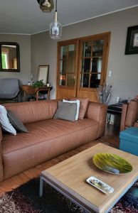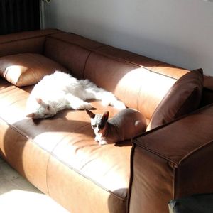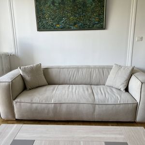 Bon état. Une déchirure SOUS le canapé. Un petit accroc au dos du canapé. Photos sur demande