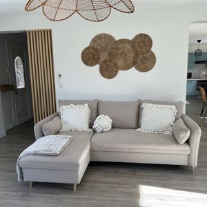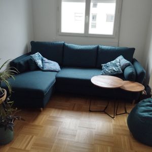 Ce canapé d'angle voit les choses en grand. Canapé, lit, rangement... DRISS est un canapé trois-en-un aux dimensions généreuses et au style superbe. Un joli revêtement en polyester enveloppe assise et dossier pour un rendu ultra cosy. Il est complété par quatre pieds en bois massif, aussi solides que déco. Grâce à son style scandinave affirmé, ce canapé d'angle convertible est un indémodable facile à vivre. Avec son épais rembourrage et ses jolis angles arrondis, ce n'est pas une assise de salon classique : c'est une véritable invitation à la détente.