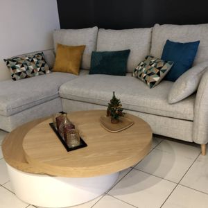 Ce canapé d'angle est réversible : vous pouvez positionner l'angle à droite comme à gauche. Le revêtement de ce canapé scandinave est en tissu déperlant pour faciliter son entretien.
