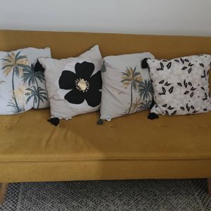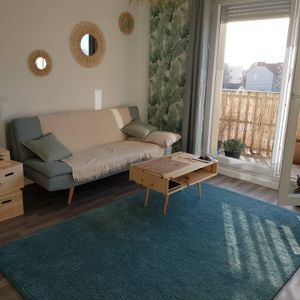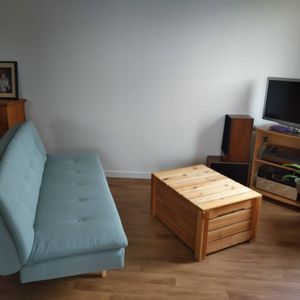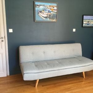 Canapé convertible scandinave 3 places en tissu bleu canard et bois clair SENSO
