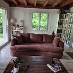 Son tissu effet velours terre brûlée répond à de grandes attentes de douceur et de détente. SACHA incarne l'élégance au naturel, avec des volumes délicats au toucher et toujours confortables. Il possède une large assise avec une densité de 28kg/m³. Vous vous blottirez instinctivement dans ses 3 coussins de dossier (L68 x L50 x E22 cm) ainsi que ses 2 coussins d'appoint.