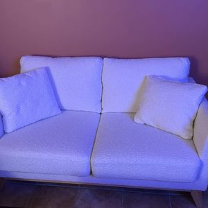 Canapé scandinave déhoussable 2 places en tissu effet velours jaune moutarde et bois clair OSLO