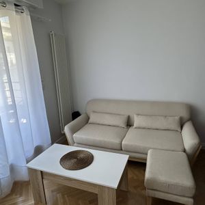 Pour un salon moderne qui conserve le charme du style rétro, associez ce canapé 3 places en tissu beige avec une table basse design et un grand tapis duveteux.
