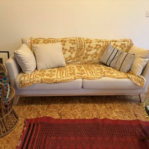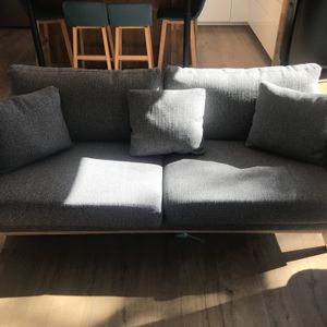 Canapé scandinave déhoussable 3 places en tissu velours bleu nuit et bois clair OSLO