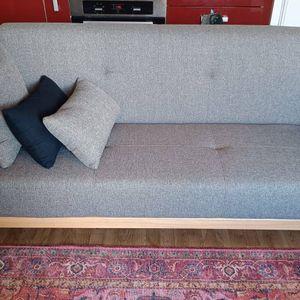 Canapé livré prêt à monter. Le colis étant volumineux, nous vous conseillons de vérifier que portes et escaliers permettent son passage.