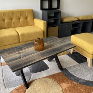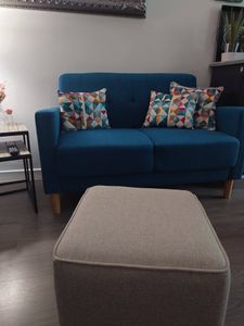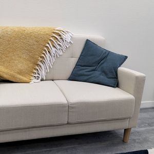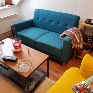 Canapé scandinave 2 places en tissu gris et bois clair MOON