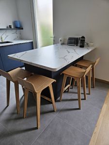 L'assise du tabouret présente deux petits points blancs, et un pied arrière une micro écorchure. Photos disponibles sur demande.