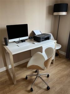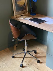 Chaise de bureau à roulettes design noir, bois clair et acier chromé WALNUT