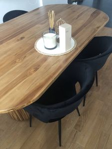 Très bon état. Quelques traces de montage SOUS l'assise. Quelques rayures sur les pieds. Photos sur demande