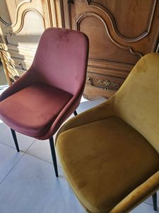 Chaises design en tissu effet velours jaune moutarde et métal noir (lot de 2) HOLO