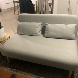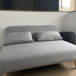 Chauffeuse 2 places convertible en tissu taupe et bois clair AMIKO