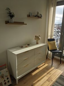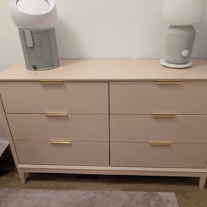 Commode blanche mat et métal doré 6 tiroirs L120 cm GIANA