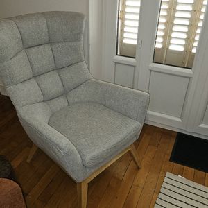 Fauteuil scandinave en tissu effet velours texturé jaune moutarde et bois clair BRODY