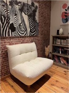 Fauteuil scandinave en tissu effet laine bouclée blanc et bois clair YUMI