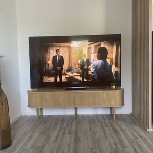 Meuble TV vintage bois foncé noyer avec rangements 2 portes coulissantes L180 cm EPIC