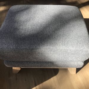 Pouf repose-pieds déhoussable scandinave en tissu vert lagon et bois clair OSLO