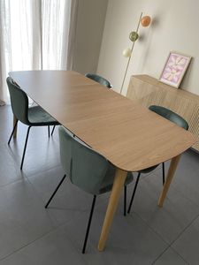 Table extensible rallonges intégrées rectangulaire en bois clair chêne L180-220 cm EGO