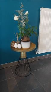 Cette table d'appoint marie un style précieux à une forme conviviale. Son plateau rond de 41 cm de diamètre accompagnera les apéros entre amis comme les soirées film. Avec ses dimensions, elle se glisse partout. Petits et grands espaces ont trouvé leur table basse design idéale. Pièce déco à part entière, elle réveillera un salon aux tons neutres ou complètera un séjour au style affirmé. On l'imagine très bien aux côtés d'un canapé en velours dans une déco raffinée un brin glamour.