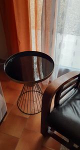 Table d'appoint ronde en acier laqué noir et doré D41 cm SPLEEN