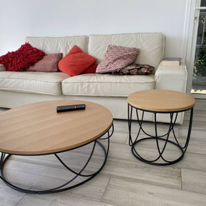 Table basse ronde bois clair chêne et métal noir D80 cm LACE