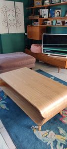 Table basse rectangulaire scandinave blanc et bois clair L118 cm TAKLA