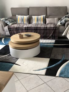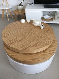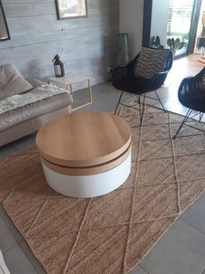 Table basse ronde avec plateaux pivotants et rangement blanc et bois clair chêne D80 cm ICON
