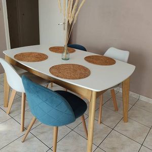 Table extensible rallonges intégrées rectangulaire blanc et bois L140-180 cm MEENA