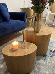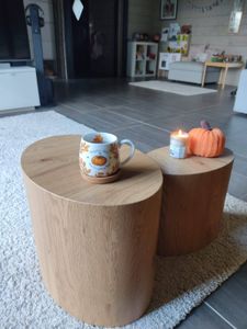 Tables basses gigognes ovales scandinaves bois clair finition chêne (lot de 2) WOODY