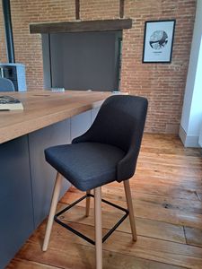 Tabourets de bar scandinaves pivotants 360° en tissu effet velours texturé terracotta et bois hêtre massif H65 cm (lot de 2) HASTA