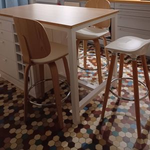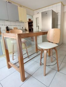 Tabourets de bar design pivotants blancs et bois clair H66 cm (lot de 2) BECK
