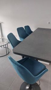 Tabourets de bar design réglables en tissu velours taupe et métal noir 360° (lot de 2) HOLO