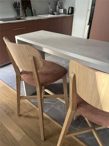 Tabourets de bar en bois clair chêne et tissu effet velours terre brûlée H65 cm (lot de 2) LUCIA