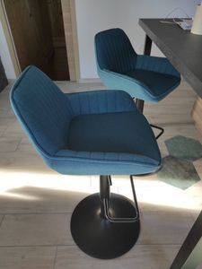 Tabourets de bar réglables design en tissu bleu (lot de 2) RONNIE