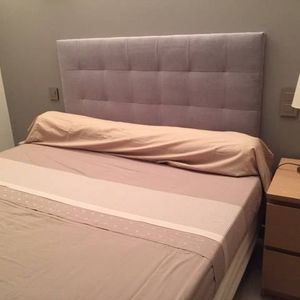 Tête de lit capitonnée en tissu beige clair naturel L140 cm HALCIONA